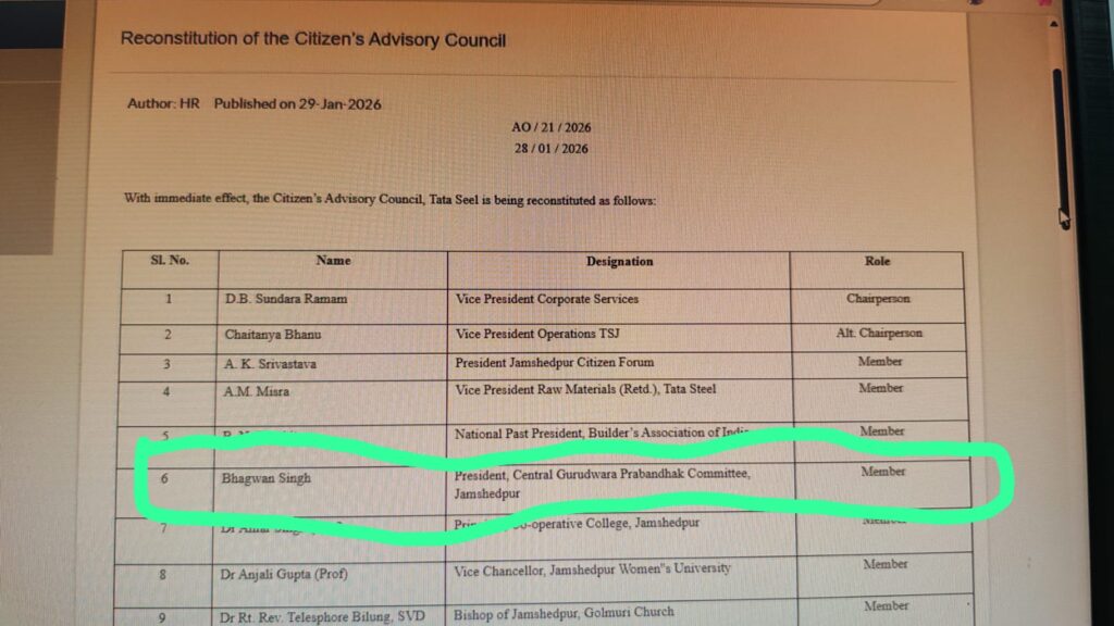 Big achievement-Tata Steel की Citizen’s Advisory Council में सिख समाज को मिला प्रतिनिधित्व.