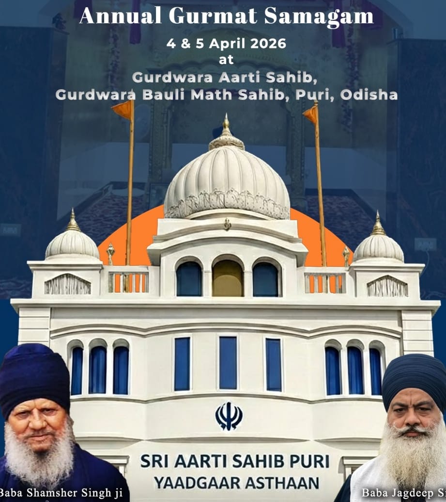 jamshedpur/puri-आरती साहिब गुरुद्वारा जगन्नाथ पुरी में सालाना दो दिवसीय गुरमत समागम 4 एवं 5 अप्रैल को।